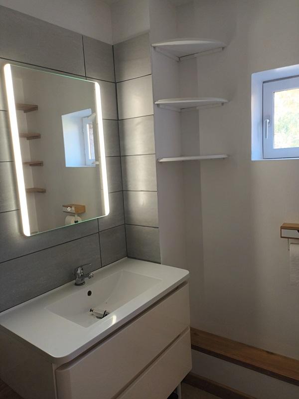 - au rez-de-chaussée : un séjour ouvert sur une cuisine aménagée et équipée