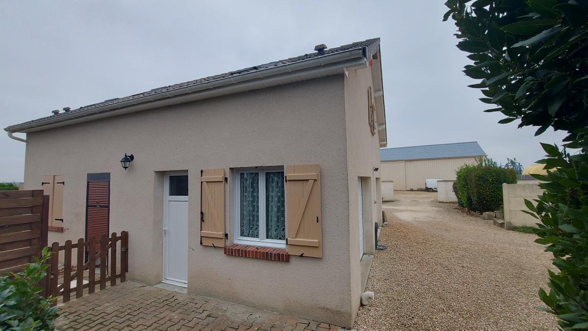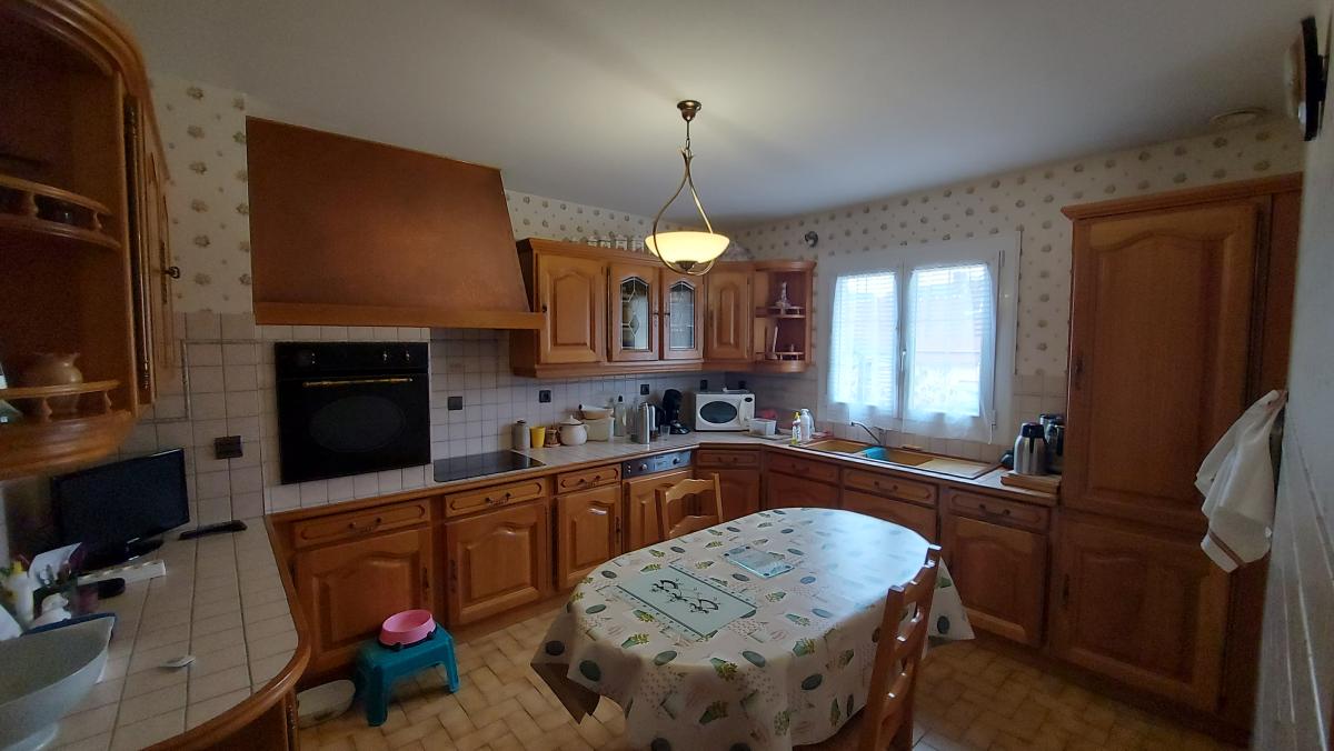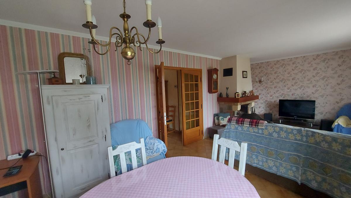 Une maison à usage d'habitation sur sous-sol total comprenant : Au rez-de-chaussée : entrée avec placards, cuisine aménagée et équipée, salon - séjour avec cheminée, deux chambres, salle de bains, toilettes. Au sous-sol garage, cuisine, buanderie, bureaux.